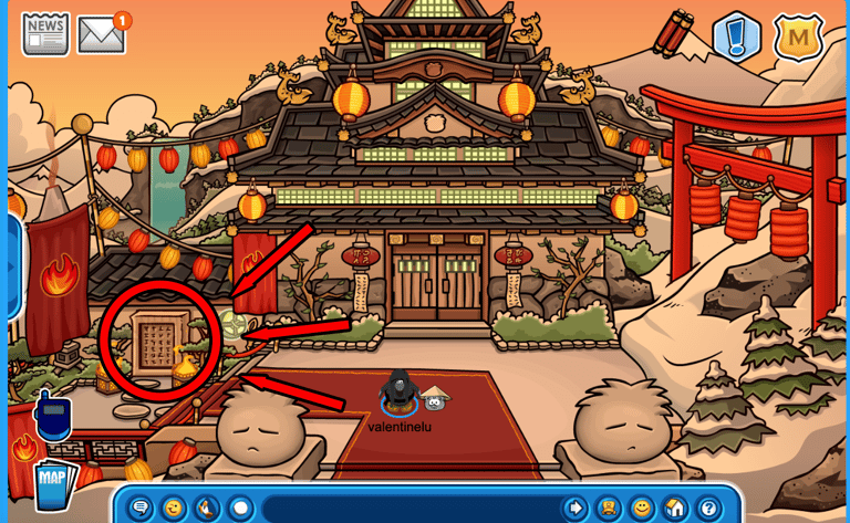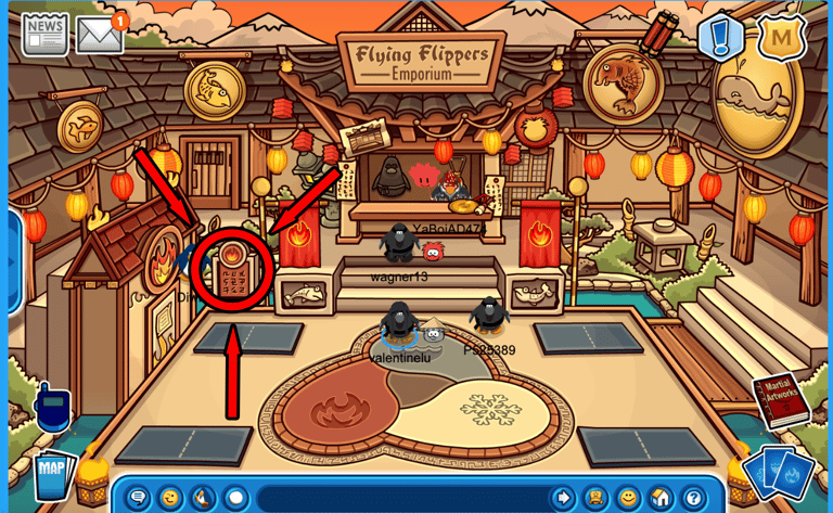 Once you enter the Ninja Hideout, click on the stone tablet with the flame on it to open the secret entrance to the Fire Dojo.