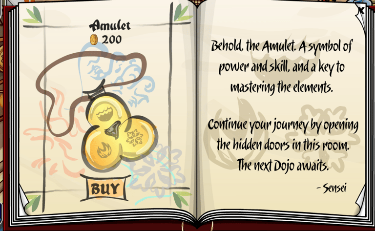 To buy the Amulet, access the Martial Artworks catalog (available in The Ninja Hideout.)