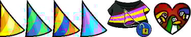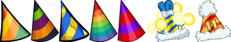 Items: 1st-4th Year Party Hats, Beta Hat T-Shirt, 20th Anniversary Pin