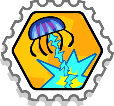 To receive this stamp, you need to get shocked by jellyfish three times and then complete the game by catching 60 fish and/or the mullet. Be sure to pick up Cans of Worms along the way to get more worms!