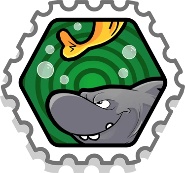 To earn this stamp, catch a fish and dangle it by a shark's mouth when it swims across the screen.