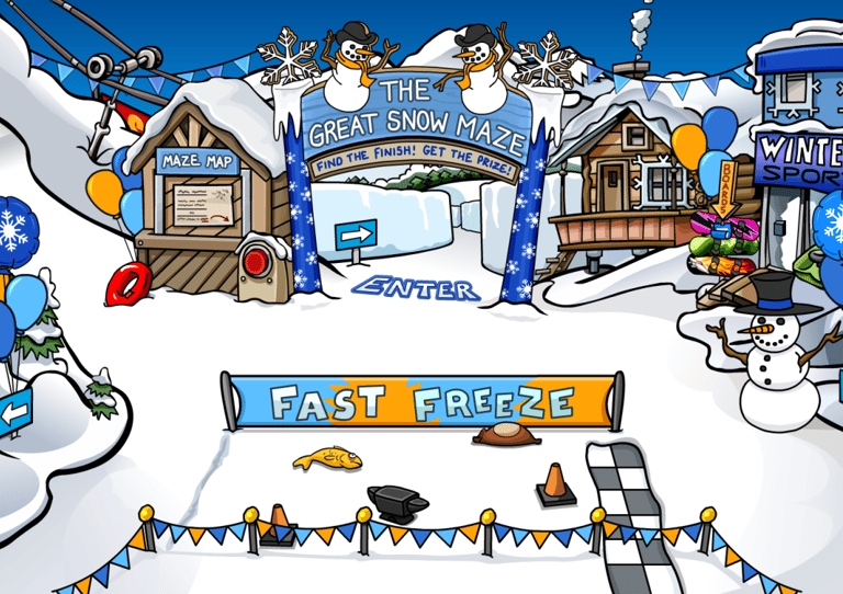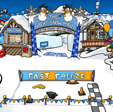 At the Ski Village, you can enter The Great Snow Maze and earn two prizes!